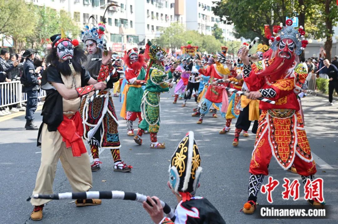 2023年3月23日,廣東普寧南山英歌在2023非遺品牌大會(huì)“非遺之夜”上表演。陳楚紅 攝