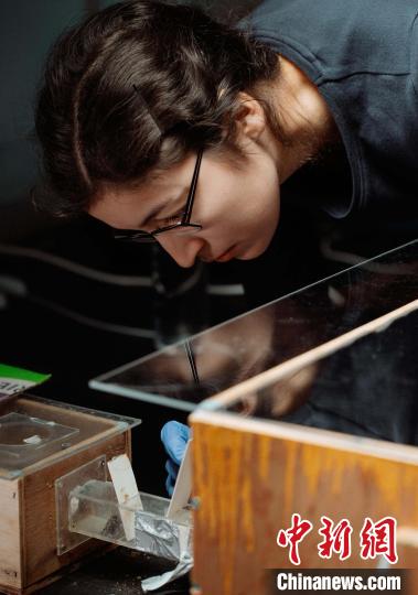 一只經(jīng)過訓練的示范蜂和一只必須學會解題方法的觀察蜂,在檢查密閉謎題盒上尚無法獲得的獎勵(圖片來自倫敦瑪麗女王大學)。施普林格·自然/供圖
