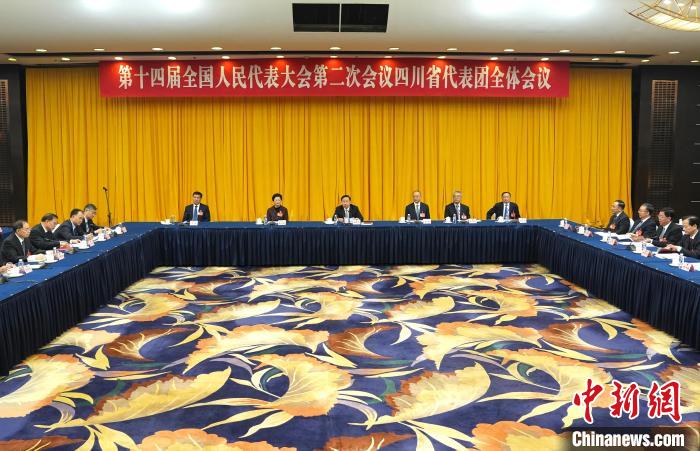 3月10日,出席十四屆全國人大二次會議的四川代表團舉行開放團組會議。中新社記者 崔楠 攝