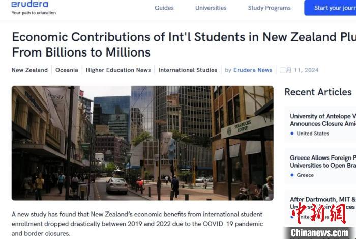 一項(xiàng)新調(diào)查顯示,中國(guó)仍是新西蘭的留學(xué)生主要來源國(guó)。圖片來源于EruderaNews網(wǎng)站報(bào)道截圖。