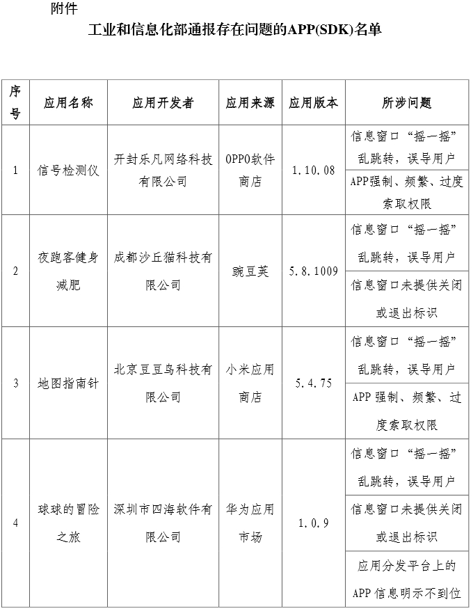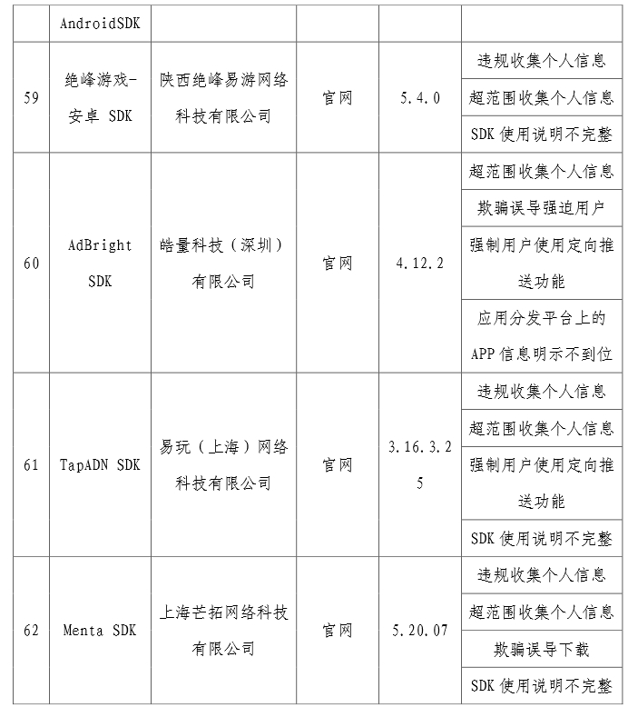 工信部通報(bào)62款存在侵害用戶權(quán)益行為的APP(SDK)