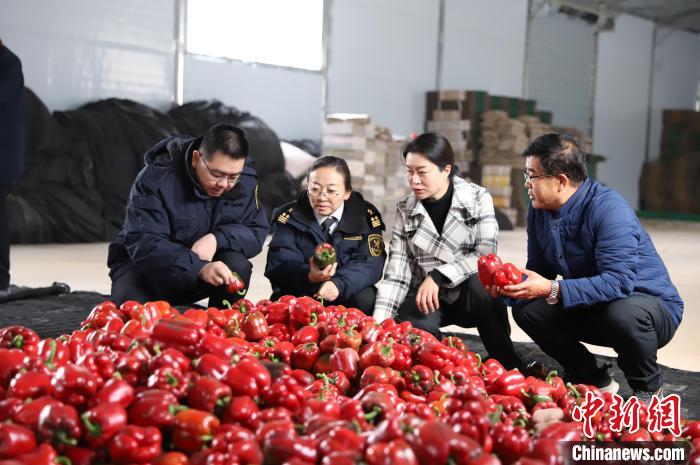 圖為西寧海關(guān)工作人員對(duì)出口的彩椒進(jìn)行檢查。 西寧海關(guān) 供圖