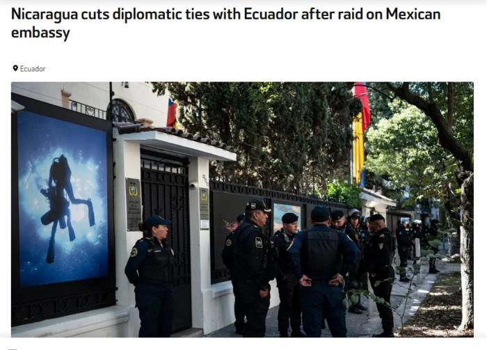 據(jù)報(bào)道,公告稱,尼方堅(jiān)決反對并譴責(zé)厄政府“公然違反國際法的行為”。厄安全部隊(duì)本應(yīng)履行保護(hù)厄公民秩序、安全及生命的職責(zé),卻在厄首都基多進(jìn)行了“不正常且令人斥責(zé)”的行動(dòng)。