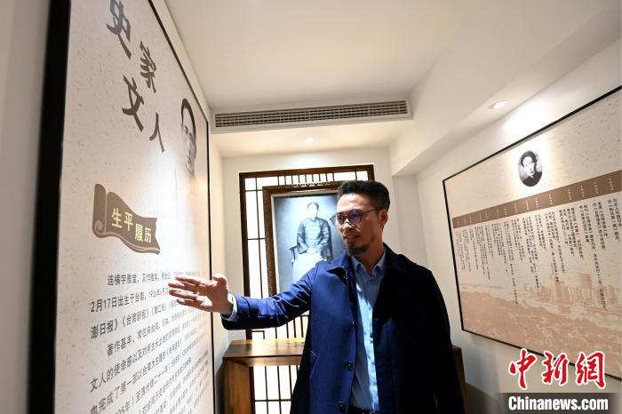 福建省連橫文化研究院理事長連明富向參觀者介紹連橫文化。 中新社記者 張金川 攝