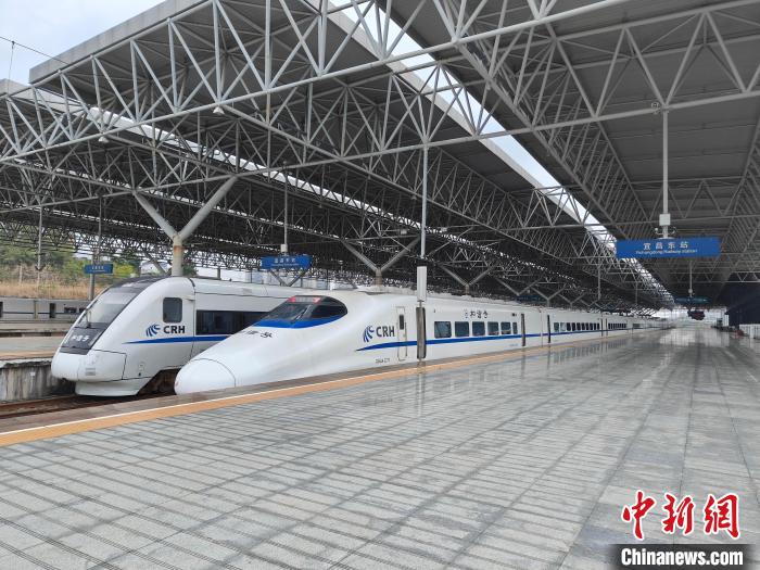 圖為動車在宜昌東站??俊j慅?攝