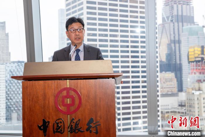 當(dāng)?shù)貢r(shí)間4月10日,以“經(jīng)濟(jì)合作與文化傳承的雅致之約”為主題的“甘肅雅集”推介活動(dòng)在美國(guó)紐約曼哈頓舉行。圖為甘肅省委常委、副省長(zhǎng)張錦剛致辭?! ≈行律缬浾?廖攀 攝