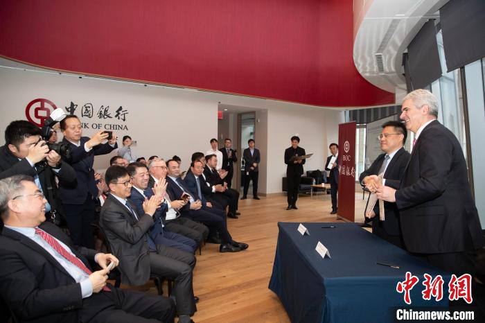 當(dāng)?shù)貢r(shí)間4月10日,以“經(jīng)濟(jì)合作與文化傳承的雅致之約”為主題的“甘肅雅集”推介活動(dòng)在美國(guó)紐約曼哈頓舉行。圖為甘肅省人民對(duì)外友好協(xié)會(huì)同美中綠色基金會(huì)簽署了諒解備忘錄?! ≈行律缬浾?廖攀 攝