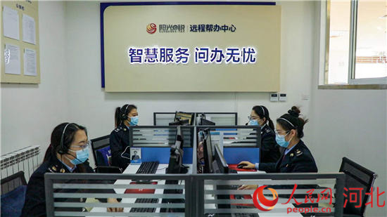 安國市“線上稅費支持中心”的工作人員正在工作。 班靜怡攝