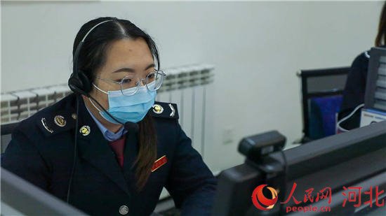 安國市“線上稅費支持中心”的工作人員通過同屏指引功能幫助納稅人辦理相關(guān)業(yè)務(wù)。 班靜怡攝