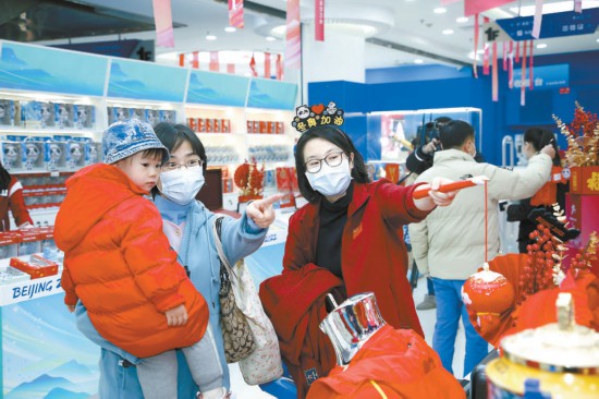 春節(jié)將至,年味漸濃。1月12日,在位于東城區(qū)王府井工美大廈一層的北京2022官方特許商品旗艦店內(nèi),“冬奧鬧新春”——北京冬奧會(huì)特許商品年貨節(jié)在這里火熱揭幕。