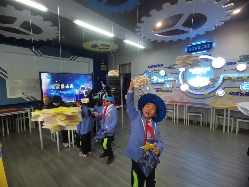 為進(jìn)一步減輕學(xué)生的課業(yè)負(fù)擔(dān),更好地促進(jìn)學(xué)生們的全面發(fā)展,該校變“常規(guī)考試”為“學(xué)科素養(yǎng)考核”,學(xué)業(yè)評價借助“天宮之旅”項目式研學(xué)的形式進(jìn)行,圍繞語文、數(shù)學(xué)、英語、體育、音樂、科學(xué)、美術(shù)七門學(xué)科,分一、二年級設(shè)置了“天宮生活艙”“探索星未來”“星球?qū)ε觥薄疤占佑驼尽钡取瓣P(guān)卡”,學(xué)生們通過“闖關(guān)”既鞏固了知識,又提高了學(xué)習(xí)興趣。