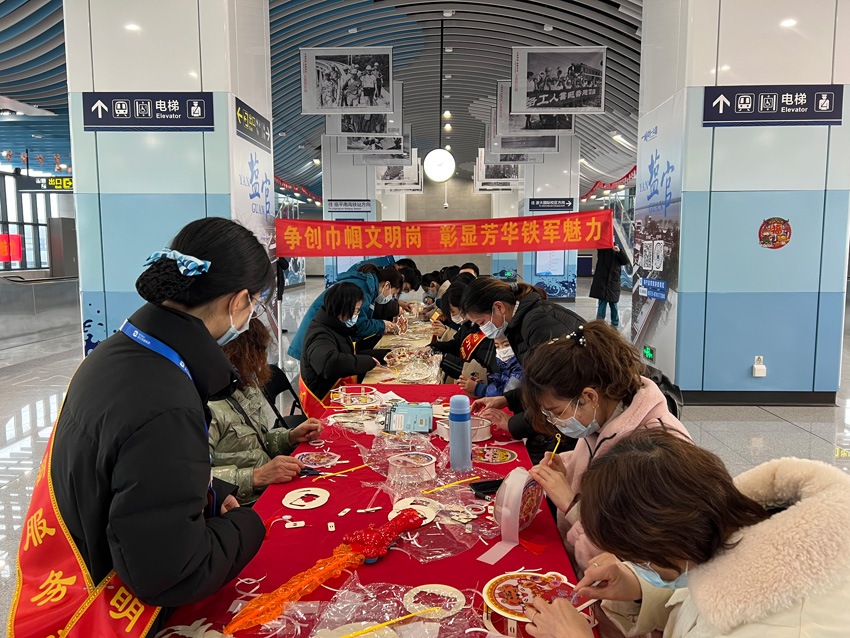 鬧元宵、扎虎燈、猜燈謎……節(jié)日里的杭海城際鐵路各車站熱鬧非凡。在張燈結(jié)彩的海寧海昌路站,工作人員熱情邀請(qǐng)乘客參加猜燈謎活動(dòng)。活動(dòng)中,乘客們有的凝眉思考,有的積極討論,歡歡喜喜猜著燈謎,為節(jié)日里增添了一份歡樂(lè)和喜悅。海寧鹽官站又是另一番歡樂(lè)的場(chǎng)景,工作人員親自動(dòng)手,制作出一盞盞漂亮的虎燈,乘客們紛紛圍攏過(guò)來(lái)駐足觀看,希望在新的一年里贏得“好兆頭”,現(xiàn)場(chǎng)一片其樂(lè)融融,歡聲笑語(yǔ)。