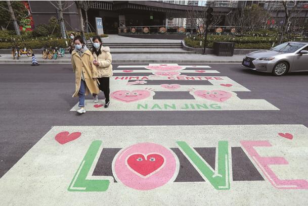 南京雨花臺(tái)區(qū)設(shè)置“愛心斑馬線”引人注目