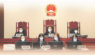 最高人民法院知識產(chǎn)權(quán)法庭調(diào)派技術(shù)調(diào)查官(右一)支援寧夏回族自治區(qū)銀川市中級人民法院技術(shù)類知識產(chǎn)權(quán)案件審判。