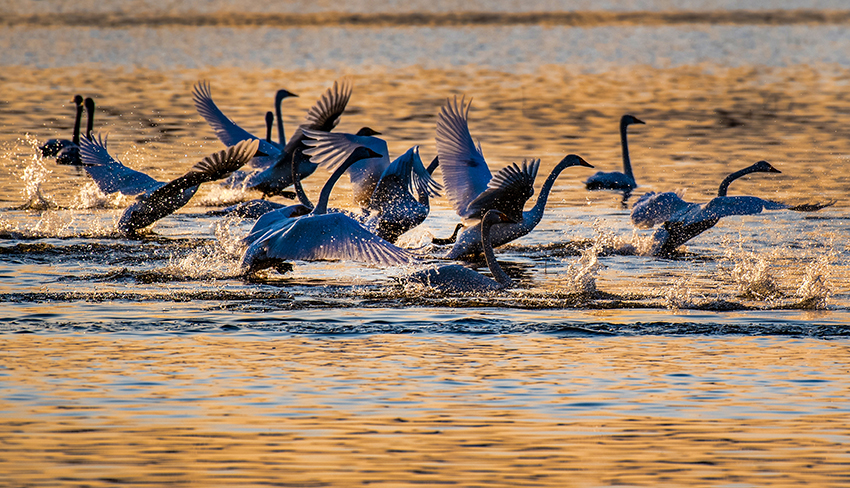 山西萬(wàn)榮:黃河濕地天鵝曼舞【2】