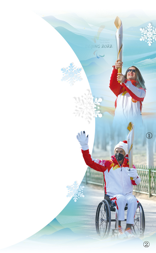 圖①:3月3日,火炬手、國際殘奧委會(huì)運(yùn)動(dòng)員委員會(huì)委員瑪?shù)倌取P羅尼傳遞火炬。