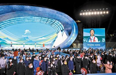 3月6日晚,北京冬殘奧會(huì)張家口賽區(qū)首場獎(jiǎng)牌頒發(fā)儀式在張家口頒獎(jiǎng)廣場舉行。 河北日?qǐng)?bào)記者 賈 恒攝