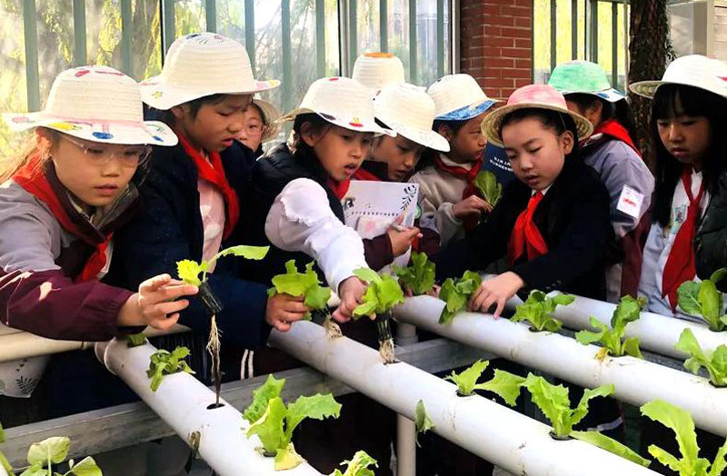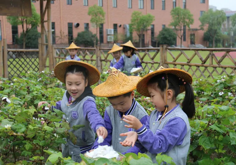 在上海奉賢,許多中小學都有一片“開心菜園”,“申時校園”里,孩子們走出教室、親近自然,“小菜園”成了戶外研學的“大天地”和勞動教育的天然基地。