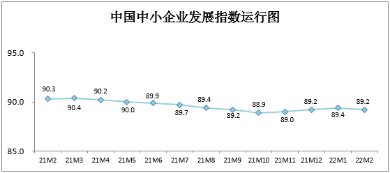 人民網(wǎng)北京3月10日電 (王仁宏)近日,中國(guó)中小企業(yè)協(xié)會(huì)發(fā)布2022年2月中國(guó)中小企業(yè)發(fā)展指數(shù)。數(shù)據(jù)顯示,受疫情和春節(jié)放假等因素影響,2022年2月中小企業(yè)發(fā)展指數(shù)(SMEDI)為89.2,按可比口徑環(huán)比下降0.2點(diǎn),在連續(xù)三個(gè)月上升后略有下降,低于2021年同期水平。