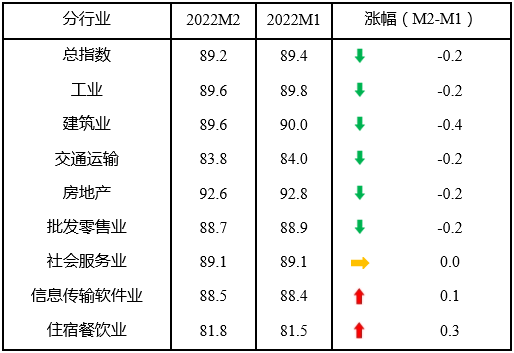 企業(yè)信心有待穩(wěn)固。外部環(huán)境不穩(wěn)定不確定因素增多;國(guó)內(nèi)疫情點(diǎn)多、面廣、頻發(fā),對(duì)接觸性服務(wù)業(yè)的影響加大,大宗原材料價(jià)格反彈,影響中小企業(yè)發(fā)展信心。反映企業(yè)信心的宏觀經(jīng)濟(jì)感受指數(shù)為98.3,比上月下降0.3點(diǎn)。所調(diào)查的8個(gè)行業(yè)中,5個(gè)行業(yè)宏觀經(jīng)濟(jì)感受指數(shù)下降。