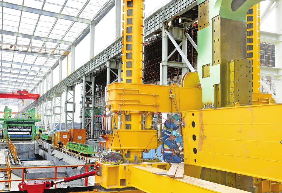 3月12日,中國(guó)寶武太鋼集團(tuán)4300mm中厚板生產(chǎn)線智能化升級(jí)改造工程現(xiàn)場(chǎng),施工人員正在抓緊進(jìn)行設(shè)備安裝。太鋼4300mm中厚板生產(chǎn)線智能化升級(jí)改造占地面積約22.54萬平方米,是山西省、中國(guó)寶武綠色精品重點(diǎn)工程,今年8月份投產(chǎn)后預(yù)計(jì)每年可生產(chǎn)70萬噸不同規(guī)格資源節(jié)約型特殊不銹鋼、特種合金和優(yōu)質(zhì)碳鋼等高端板材,實(shí)現(xiàn)銷售收入80億元,進(jìn)一步提升企業(yè)競(jìng)爭(zhēng)力。(王旭宏攝)