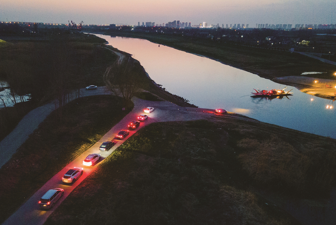 蘇皖交界處的滁河上,在南京工作的滁州自駕族乘著暮色擺渡回家。