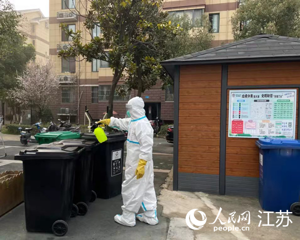 趙必柱對(duì)垃圾桶進(jìn)行消殺。江融宣攝
