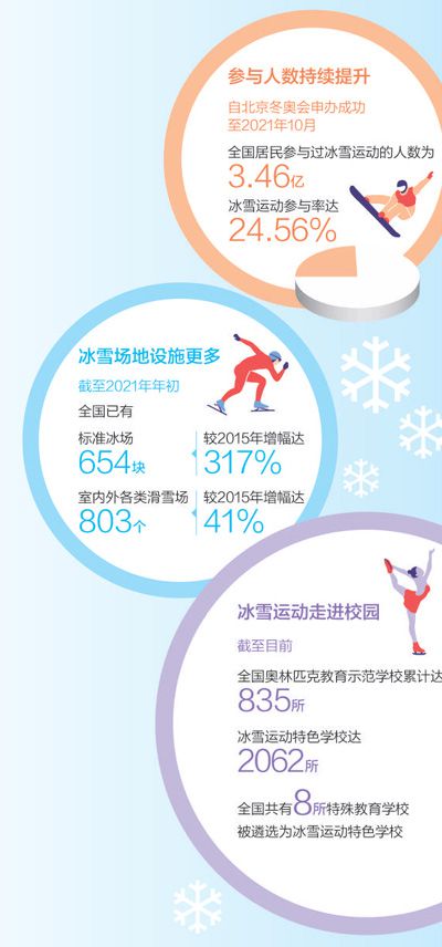 北京冬奧會和冬殘奧會的東風,播撒著冰雪運動的種子,在各地生根萌芽。自申冬奧成功至2021年10月,全國居民參與過冰雪運動的人數(shù)達到3.46億,冰雪運動參與率達24.56%,“帶動3億人參與冰雪運動”愿景成為現(xiàn)實。國際奧委會主席巴赫表示,我們歡迎中國成為冰雪運動大國。