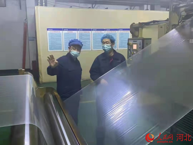 河北金達(dá)塑業(yè)有限公司復(fù)工工人正在檢驗(yàn)產(chǎn)品。 栗兵攝