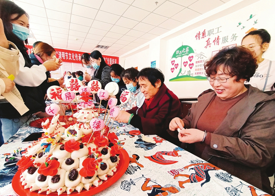 三月二十七日,石樓縣新時(shí)代文明實(shí)踐中心開展“清明節(jié)文化傳承教育和傳統(tǒng)美食制作”專題培訓(xùn),邀請“面花”手藝人現(xiàn)場教授捏面燕,倡導(dǎo)移風(fēng)易俗、文明祭祀。(李晶晶攝)