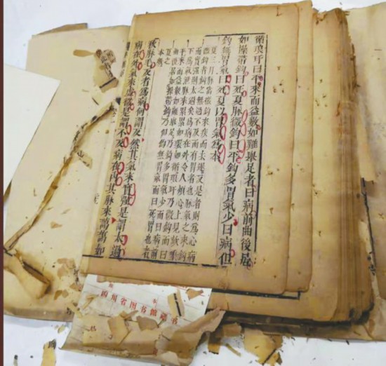 參加杭州培訓(xùn)之前,時(shí)任四川省圖書(shū)館特藏部主任沙銘璞老先生還特別將一塊用棉布包裹的厚厚的書(shū)磚交給袁東玨,并叮囑要把這部書(shū)搶救出來(lái)。“當(dāng)時(shí),四川省圖書(shū)館的古籍修復(fù)已中斷了很多年,古籍修復(fù)工作面臨青黃不接的局面,沙老希望我回來(lái)后能把這項(xiàng)工作接起來(lái)。”