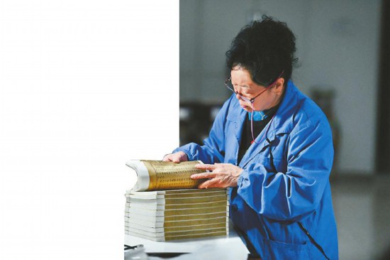 熟能生巧,修書(shū)破萬(wàn)卷后,她和古籍建立了一種獨(dú)特的默契,“比如我現(xiàn)在做金鑲玉的鑲襯及折邊,200頁(yè)兩天就可以做完,書(shū)葉的厚薄、紙張潤(rùn)度,靠著手摸就能感覺(jué)到。”