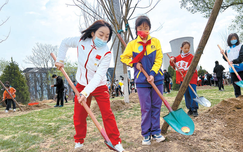 冬奧冠軍隋文靜與石景山的青少年一起參與植樹活動(dòng)。 本報(bào)記者 吳鏑攝