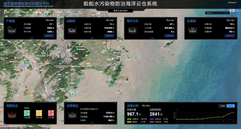海洋云倉系統(tǒng)是在臺州中心漁港設立的船舶污染物集中預處理中心,可分類回收含油污染物、生活污水、廢鉛酸電池、生活垃圾等海域污染物。海洋云倉系統(tǒng)通過5G網(wǎng)絡接入云端,將收集的數(shù)據(jù)進行實時回傳,同時部署VR相機,利用5G大帶寬特性,監(jiān)控中心可實時掌握海洋云倉系統(tǒng)運轉(zhuǎn)情況。漁民只要在“浙里辦”手機端發(fā)起污染物上交申請,系統(tǒng)就會就近派單,通知專業(yè)船舶上門收集。海洋云倉在收集到一定量級后,會通知有專業(yè)資質(zhì)的運輸車,把廢油運輸?shù)接袑I(yè)處置能力的公司處置或者再生利用,減少后期運輸和處置成本。