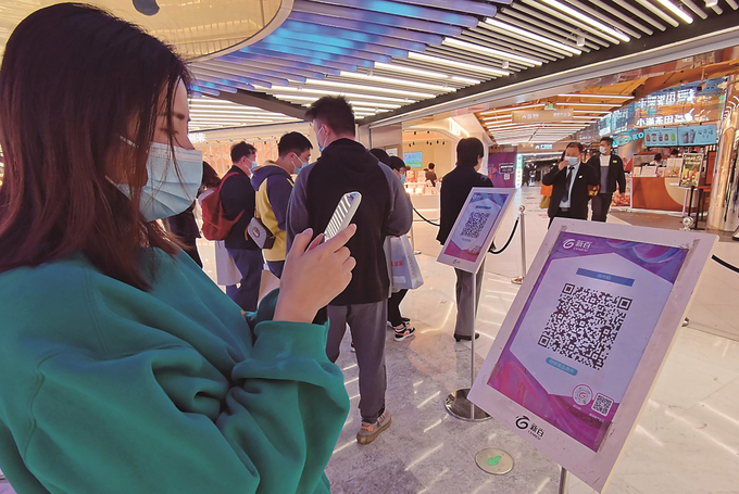 南京市民掃“場(chǎng)所碼”進(jìn)入購(gòu)物中心