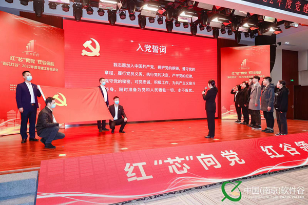 雨花軟件產業(yè)黨委組織黨員重溫入黨誓詞。軟件谷黨政辦公室供圖