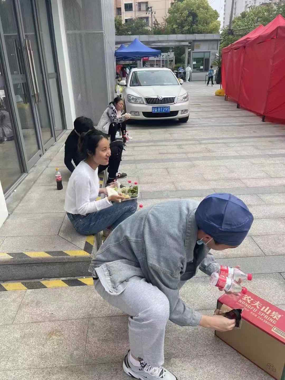 她是在職的牙科醫(yī)生。“我本來在社區(qū)當(dāng)志愿者,維持秩序,送送菜啥的??吹胶怂岵蓸诱心剂?,我興奮了!”她仍津津樂道:“4月12號,看到同事在群里發(fā)招募;4月13號,就接到招募辦電話,問我有什么要求,我說聽從安排;當(dāng)天晚上就被大巴接走了,到了集中點,分配在核酸檢測志愿者機動隊六隊。”