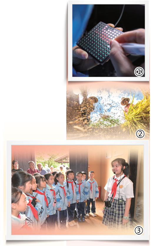 圖③:在井岡山毛澤東舊居,“小紅軍宣講團(tuán)”成員給前來參觀的學(xué)生進(jìn)行講解。