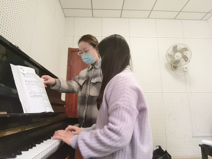 這段特殊的日子里,南京特殊教育師范學(xué)院教育科學(xué)學(xué)院學(xué)生游奕軒有了一個(gè)新頭銜——“游老師”。她的學(xué)生,就是剛剛轉(zhuǎn)到班上的同學(xué)小袁。轉(zhuǎn)來之前,小袁學(xué)的專業(yè)是管理,從未接觸過鋼琴。但現(xiàn)在作為學(xué)前教育專業(yè)的學(xué)生,不會(huì)彈鋼琴怎么行呢?于是,從小學(xué)習(xí)鋼琴的游奕軒變成小袁的老師。