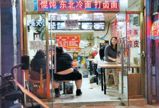 打開(kāi)大眾點(diǎn)評(píng),先選一些口碑爆棚的小吃打包,然后帶到周邊餐館里再點(diǎn)些菜,正餐、小吃都不耽誤,這是不少年輕人逛街的習(xí)慣。記者探訪發(fā)現(xiàn),目前在沿街大多數(shù)餐館不提供堂食服務(wù)的情況下,網(wǎng)紅小吃窗口前的顧客無(wú)處可去,久久不散。很多人在小吃窗口前“就地消化”,烤串、蛋糕,這些小吃食用方便,有沒(méi)有桌子、餐具都無(wú)所謂,在小吃窗口前找個(gè)椅子坐下,形成路邊大排檔,沒(méi)有桌子間隔著,用餐人員挨得更近了。