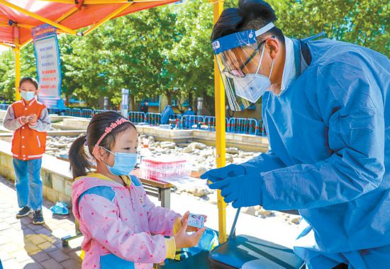 昨天清晨,天剛蒙蒙亮,鄭爍就到達(dá)集結(jié)點(diǎn)位。核酸檢測(cè)開(kāi)始后,鄭爍主要負(fù)責(zé)現(xiàn)場(chǎng)秩序維護(hù)引導(dǎo)、掃碼登記、查驗(yàn)健康寶、協(xié)助老年人做好信息登記等工作?!白蛱毂本┑淖罡邭鉁剡_(dá)到32攝氏度,核酸檢測(cè)期間,我們志愿者小組為上千位居民提供了服務(wù),這期間一個(gè)跟著媽媽來(lái)做核酸的小女孩每路過(guò)一位志愿者都會(huì)主動(dòng)說(shuō)一聲‘叔叔阿姨,辛苦了!’聽(tīng)著孩子甜美的問(wèn)候,再累也值了!”鄭爍告訴記者。