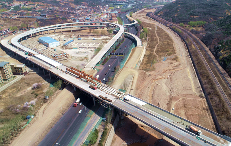 陽泉市在嚴(yán)防疫情的同時,全力推進(jìn)重大項目建設(shè)。在國道307、207線陽泉市繞城改線工程施工現(xiàn)場,740余名建設(shè)者正在緊張施工中,建設(shè)進(jìn)度已完成85%。圖為4月17日辛興互通項目施工現(xiàn)場。劉勝 攝