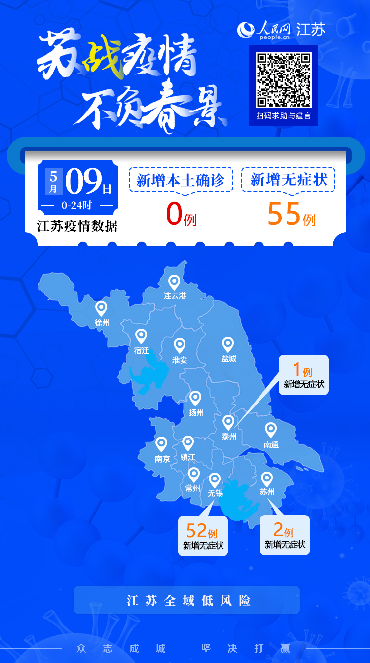 5月9日江蘇新增本土無癥狀感染者55例 無新增確診病例