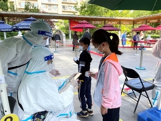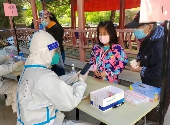 “讓我去封控區(qū),我年輕,身體好!”4月26日,紅廟北里小區(qū)部分區(qū)域?qū)嵤┓猓ü埽┛兀?yáng)區(qū)八里莊街道社區(qū)衛(wèi)生服務(wù)中心護(hù)士劉彩麗主動(dòng)請(qǐng)纓,就這樣,22歲的劉彩麗和其他4名同事承擔(dān)起5個(gè)單元門的核酸采樣任務(wù)。