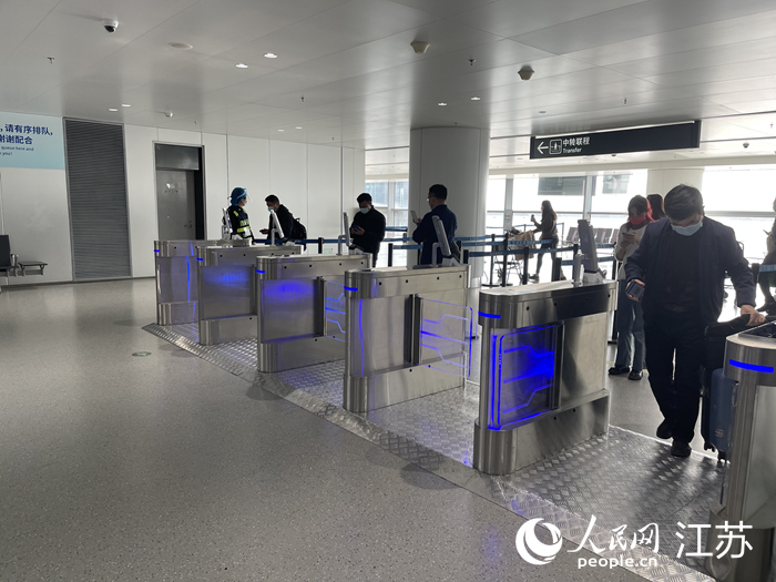 據(jù)機場工作人員介紹,祿口機場引入了智慧閘機安全門禁平臺系統(tǒng),普通旅客刷一次身份證便能驗證“兩碼一證”,大大提高了出站效率。在引入這套系統(tǒng)前,機場人工核驗的通行效率平均5人次/分鐘,如今單通道的通行效率提高到每分鐘40-50人次。