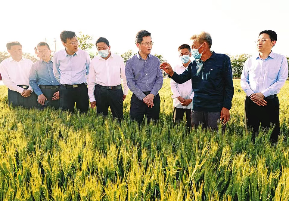 五月十七日,省委副書記、省長、省總河長藍佛安深入夏縣水頭村優(yōu)質(zhì)小麥生產(chǎn)基地,走進田間察看麥苗長勢,與農(nóng)民、農(nóng)技專家交流,詳細了解麥種培育、小麥標(biāo)準(zhǔn)化種植及田間管理等情況。記者李兆民攝