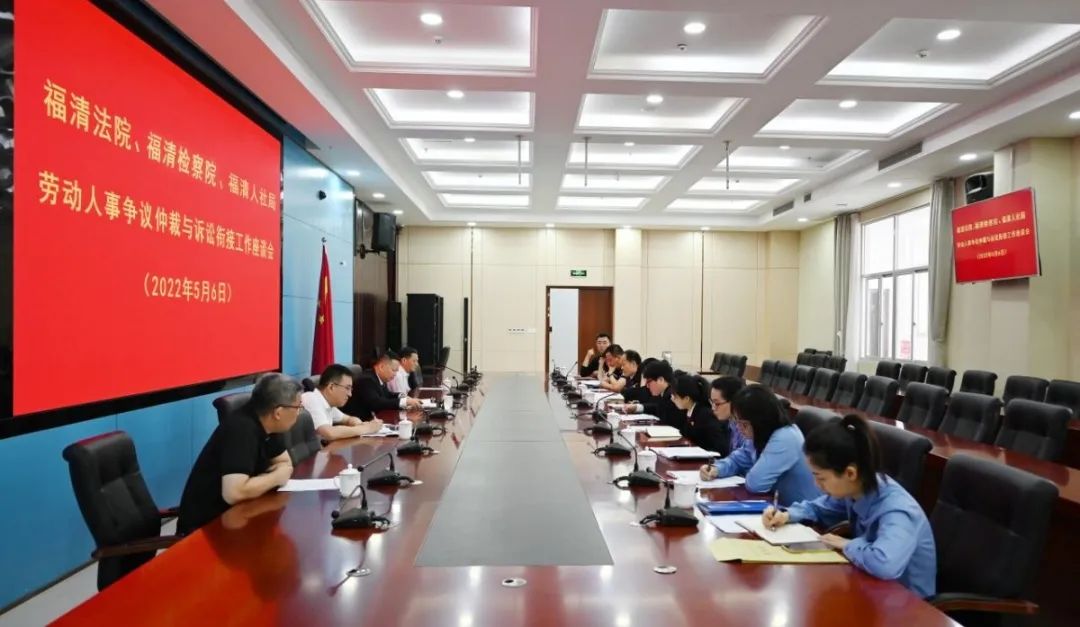 為更好推進裁審銜接,經(jīng)溝通,2022年5月6日,福清市法院、福清市檢察院、福清市人社局共同召開勞動人事爭議仲裁與訴訟銜接工作座談會。