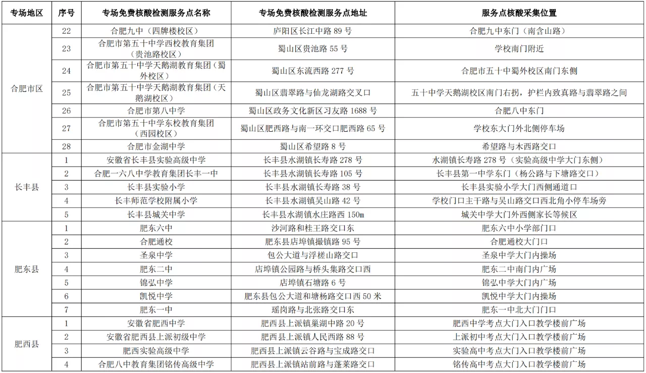根據(jù)要求,各專場(chǎng)免費(fèi)核酸檢測(cè)服務(wù)點(diǎn)僅對(duì)合肥市高考考生提供服務(wù),考生可持準(zhǔn)考證、安康碼就近到專場(chǎng)免費(fèi)核酸檢測(cè)服務(wù)點(diǎn)進(jìn)行核酸采樣,具體檢測(cè)點(diǎn)主要設(shè)在高考考點(diǎn)周邊。