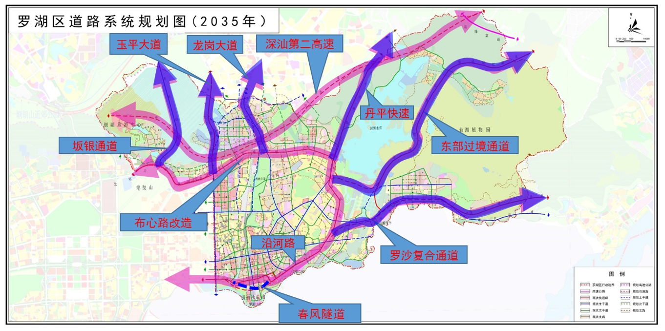 其中,“一環(huán)六射”備受關(guān)注。“一環(huán)”由濱海大道(春風(fēng)路隧道)、沿河路、愛國路高架、布心路(布心路下沉)、深汕第二高速構(gòu)成;“六射”包括羅沙路(復(fù)合通道)、東部過境通道、玉平大道、龍崗大道、丹平快速、坂銀通道。