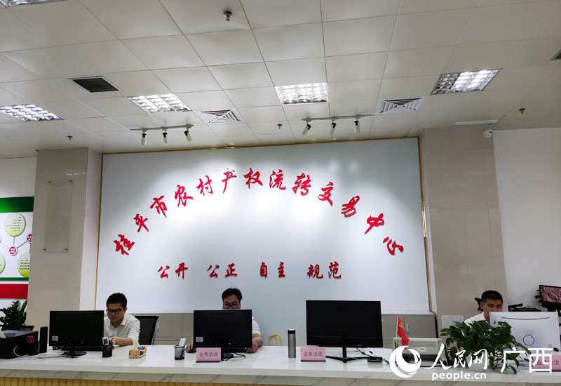 桂平市農(nóng)村產(chǎn)權(quán)流轉(zhuǎn)交易中心。人民網(wǎng)記者 王勇攝